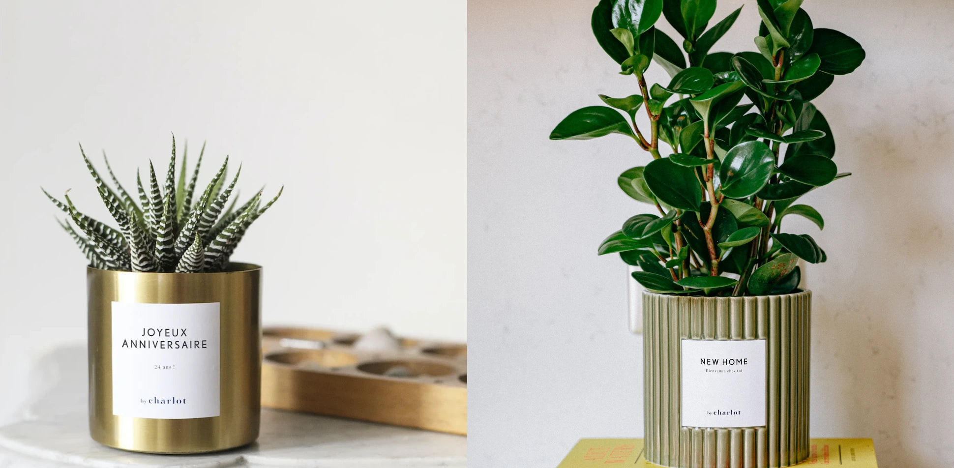 Chez By Charlot, nous avons une grande variété de plantes personnalisées pour embellir votre intérieur, que soit des petites plantes, des grandes plantes ou des plantes XXL. Mais aussi des cactus personnalisés et des plantes d'extérieurs. Les coffrets de plante, eux, vous offrent la possibilité de composer selon vos préférences une association de produits By Charlot.