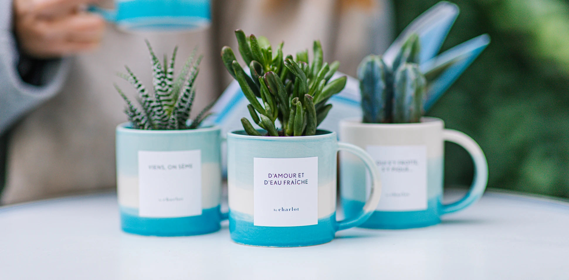 Unis par leur engagement commun envers le beau et le bien-être, Cojean et By Charlot s’associent pour multiplier les occasions de partager des moments de vie avec ceux que vous aimez. À l’approche de la Saint-Valentin, découvrez dans nos magasins, notre création commune : deux mugs qui font office de cache-pots aux couleurs de Cojean pensés par By Charlot, renfermant une adorable plante à offrir ou à s'offrir.