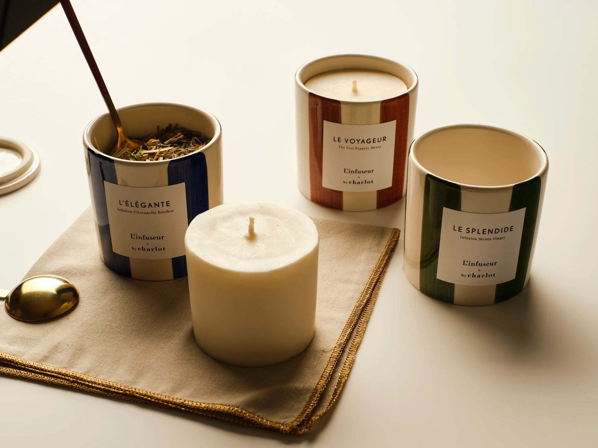 L’Élégante, Le Splendide et Le Voyageur : les fragrances de ces trois bougies iconiques se déclinent désormais en de délicates infusions. Citronnelle et rooibos pour L’Élégante, menthe, agrumes et épices pour Le Splendide, et un thé vert menthe revisité pour Le Voyageur : chaque préparation a été pensée pour s’accorder à la personnalité et à la senteur de son duo.