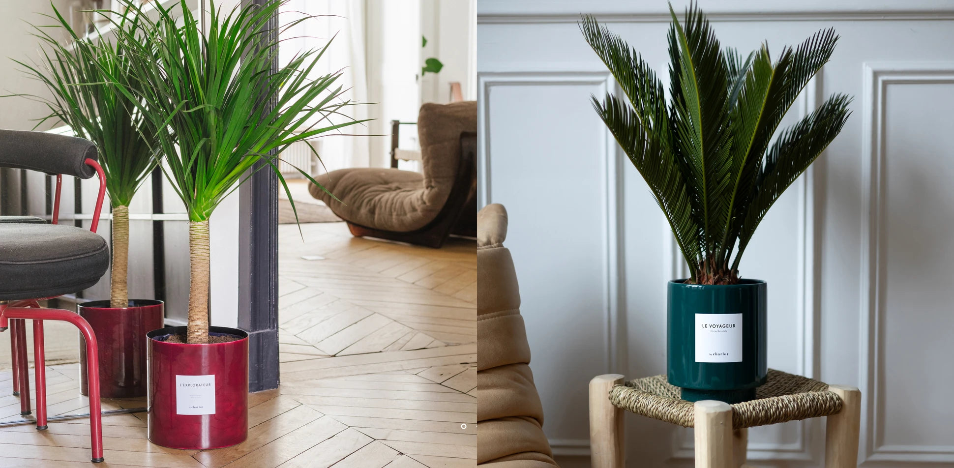 By Charlot palm trees are available in different sizes: small plants or large plants , each plant will adapt to your interior! Create a harmonious composition by combining your palm tree with other personalized plants. The variation of leaves and textures creates an interesting visual effect.