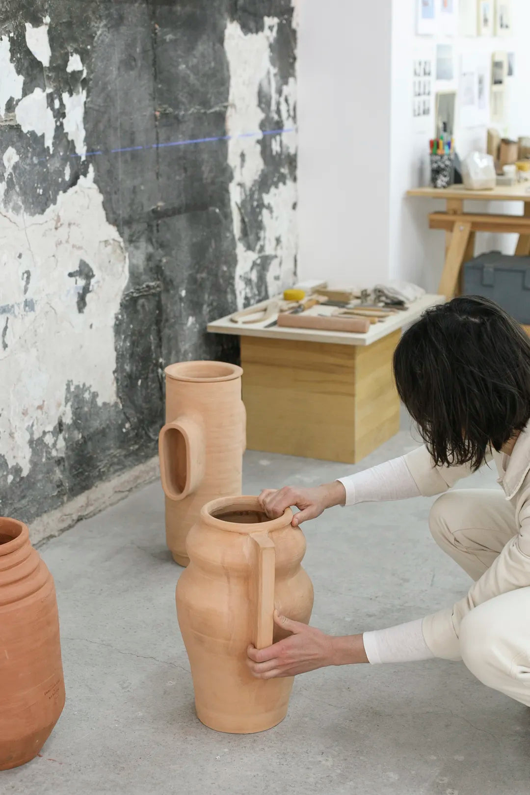 I'm very lucky because my work with clay is a very free approach. And the people I work with accompany me in this field of exploration in a fairly open manner. I conduct research and experimentation around the material clay, where one piece leads to another. Thus, my commissioned work is often linked to my personal work. It is born from an encounter, and from a crossroads of reflections and common issues that stamp the new pieces produced.