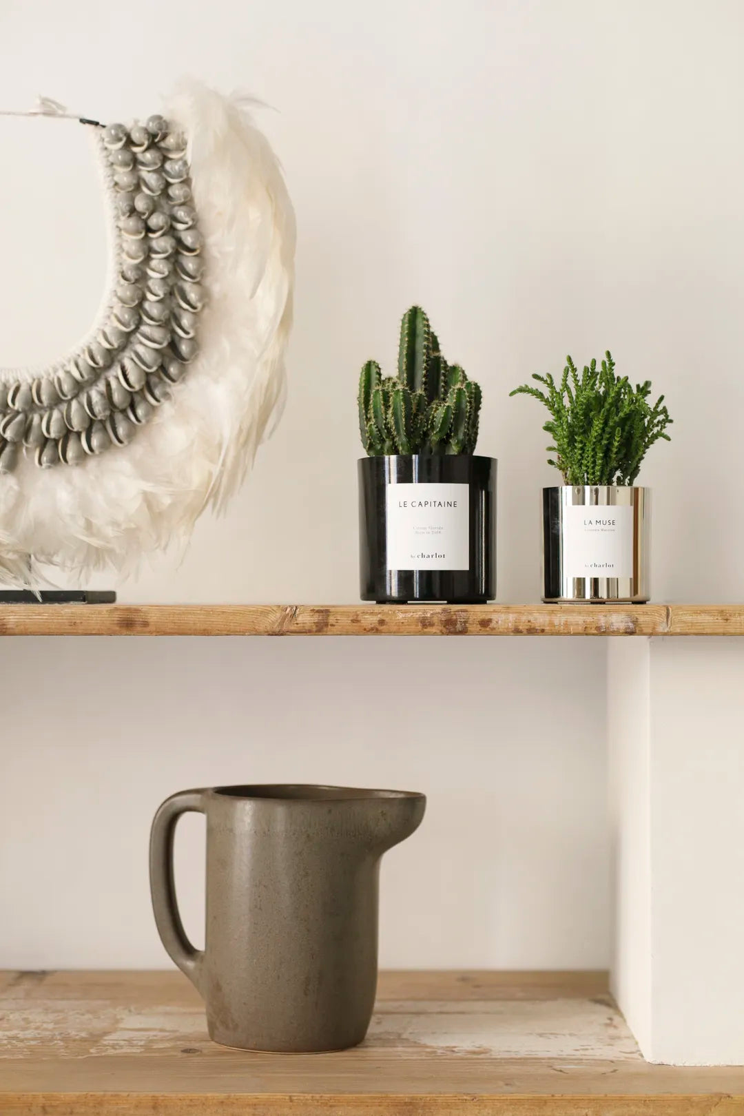 Léa : I'm very inspired by South America, so I naturally gravitated toward cacti and succulents, which are very common in the By Charlot range. We also gravitated toward the words on the pots, because L'Audacieuse or L'Aventurière clearly evoke our project. Setting up this project with two children and no one to help us was quite an adventure. We needed audacity to carry out this bold project. And Le Charmeur speaks to us because we want to charm our customers with our social media and our way of life, in an authentic way. Charm is also part of our relationship; it's a word I really like.