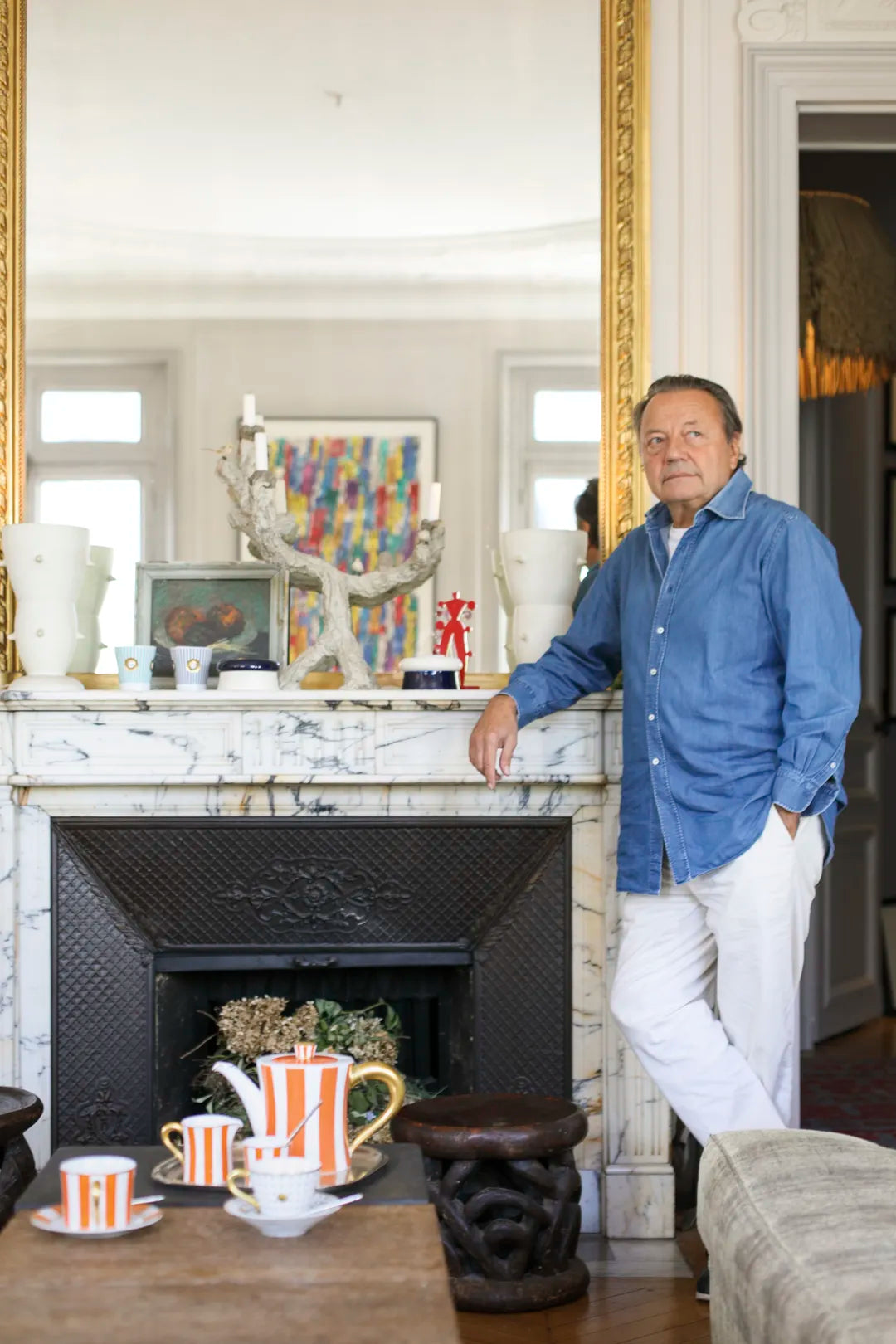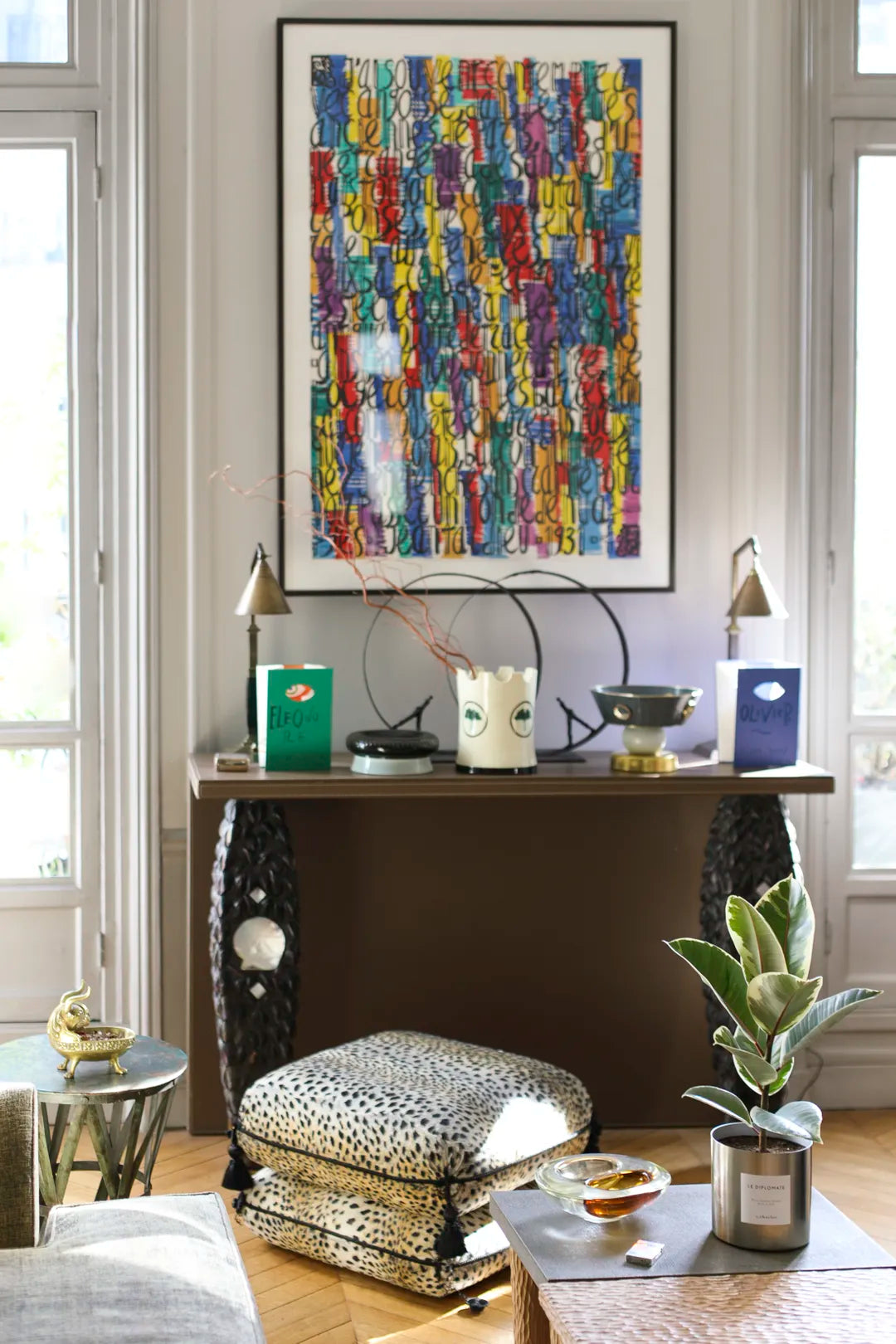 Creativity, the blend of influences and styles, the colors and prints... This is what catches our eye when we enter designer Olivier Gagnère's apartment. In fact, everything about Olivier's home is eye-catching. We don't know where to look. Travel souvenirs, furniture and trinkets he designed, others given to us by artist friends... Here we witness an accumulation of whimsical and extraordinary objects, reflecting the image of this cultured and radiant man.