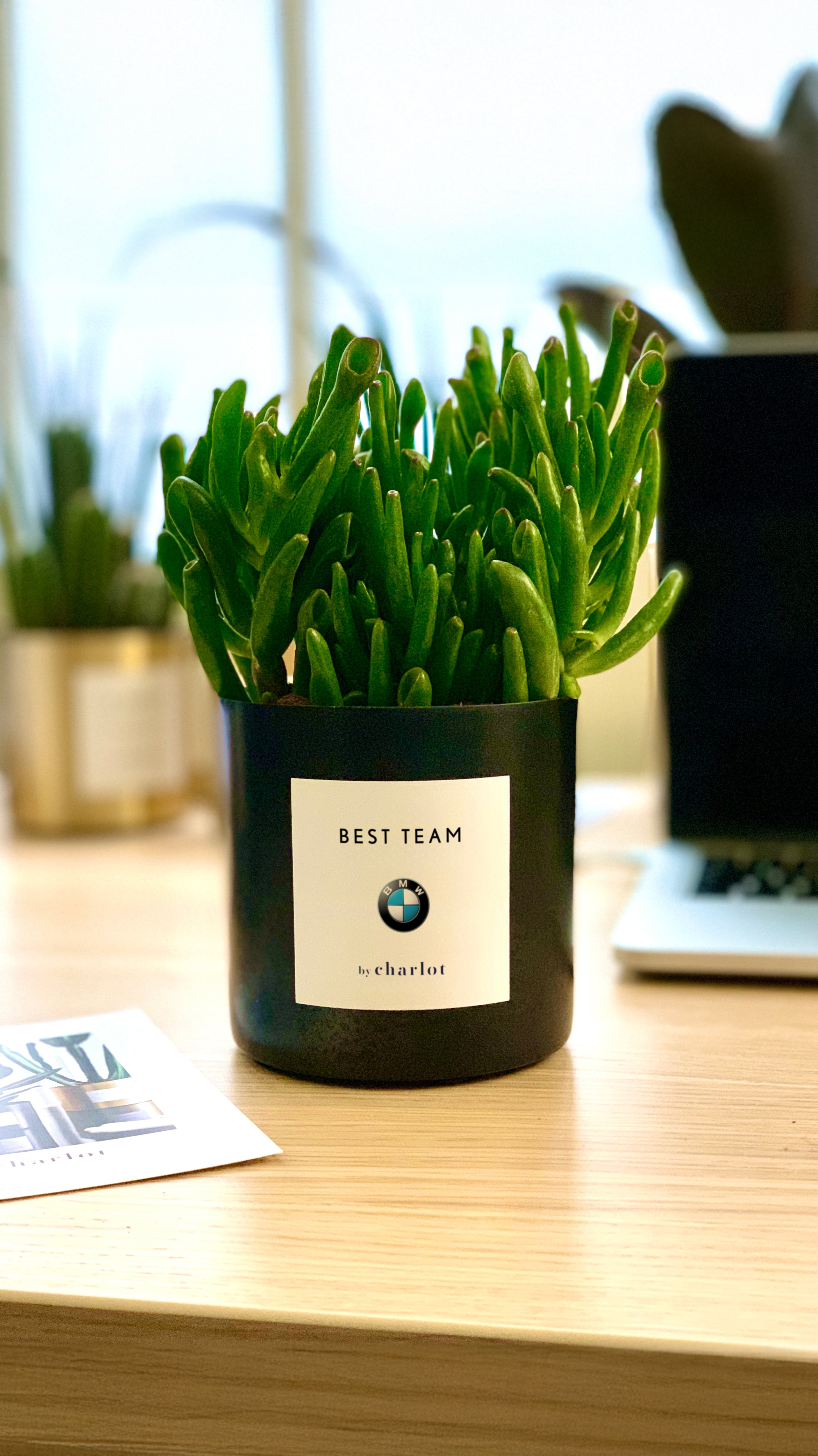 By Charlot imagine des cadeaux d’entreprise élégants et durables, pensés pour créer une vraie émotion, bien au-delà du simple objet. Des plantes soigneusement sélectionnées, associées à des pots design et personnalisés dans nos ateliers. Logo discret, message dédié, carte personnalisée, packaging adapté à votre image et à votre occasion.