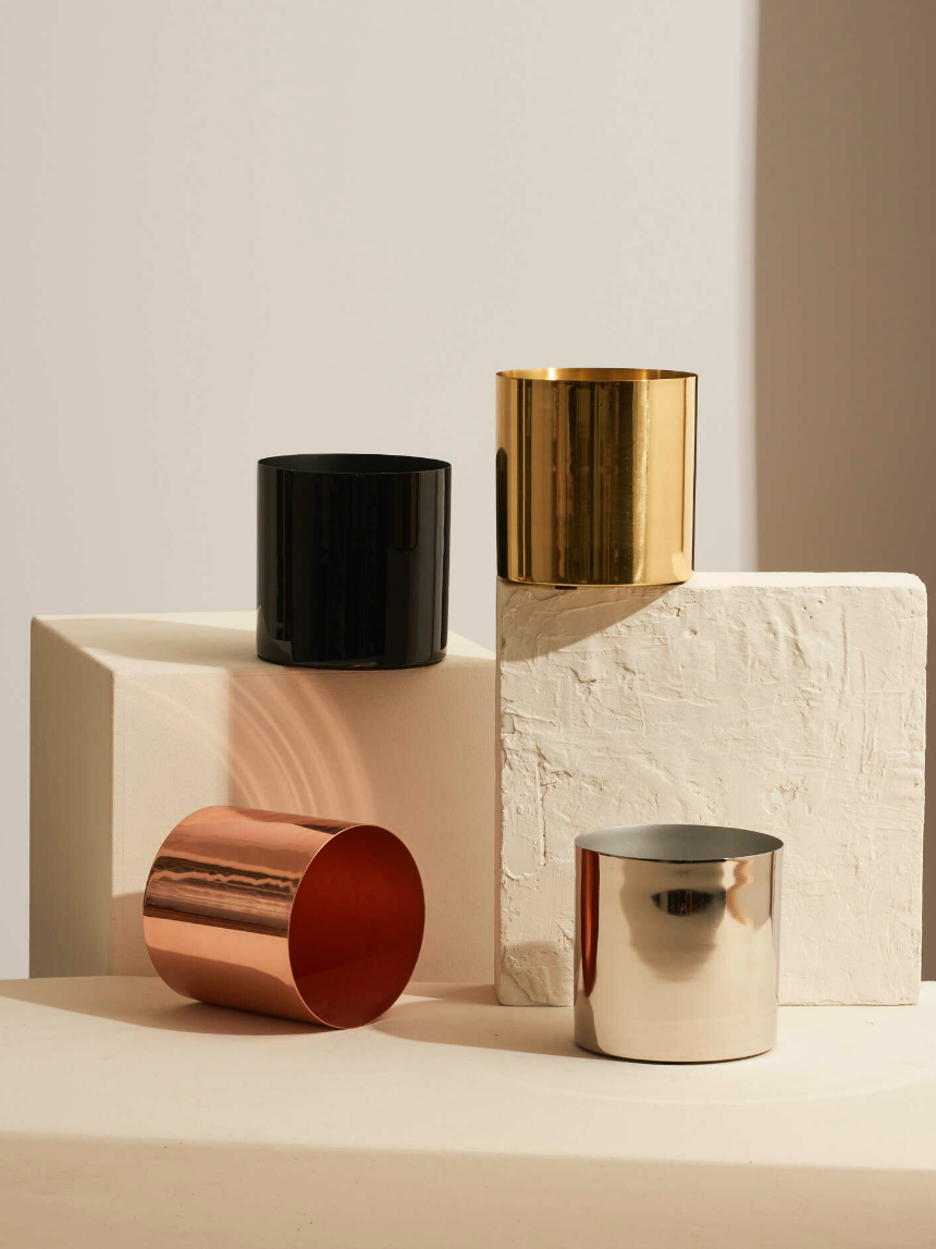 By Charlot's metal pots feature textures ranging from speckled to moiré, and colors ranging from copper to opal green. A variety that allows for unique combinations: for an interior unlike any other.